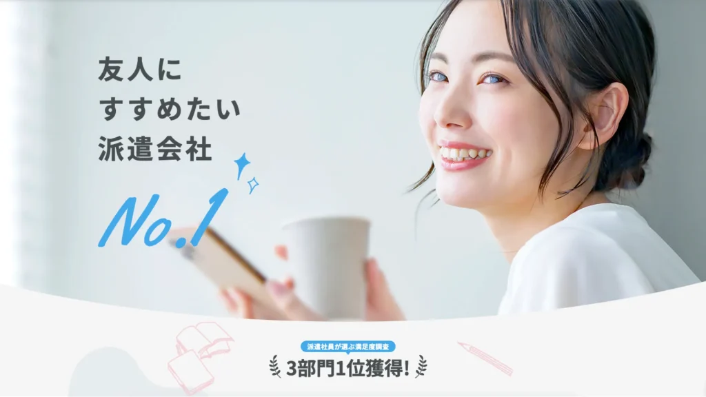 そして、営業担当の質の高さも特徴!納得しているユーザーが多いから、「友達にも紹介したい派遣会社*」No.1にも選ばれているんです!